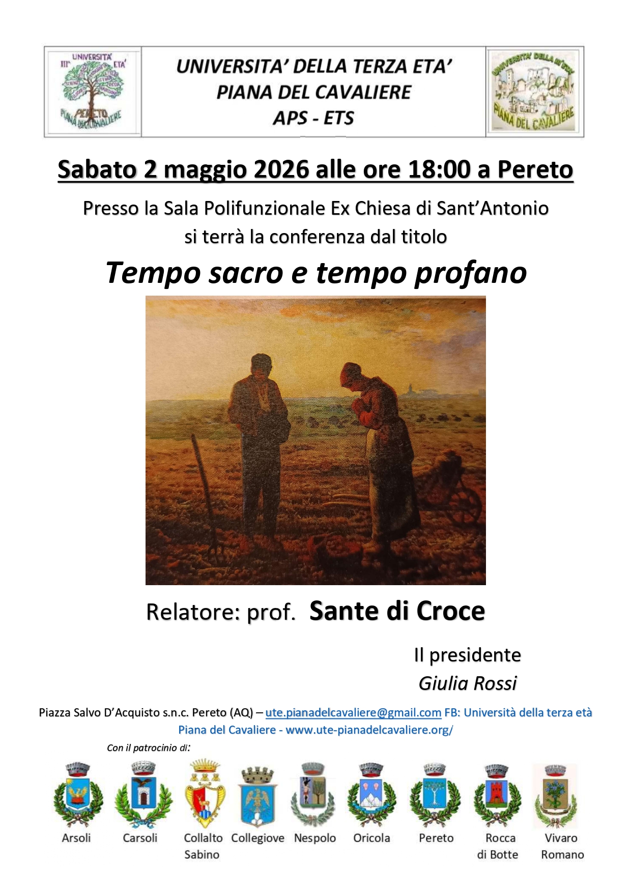 Università della Terza Età Piana del Cavaliere - Conferenza "Tempo sacro e tempo profano"